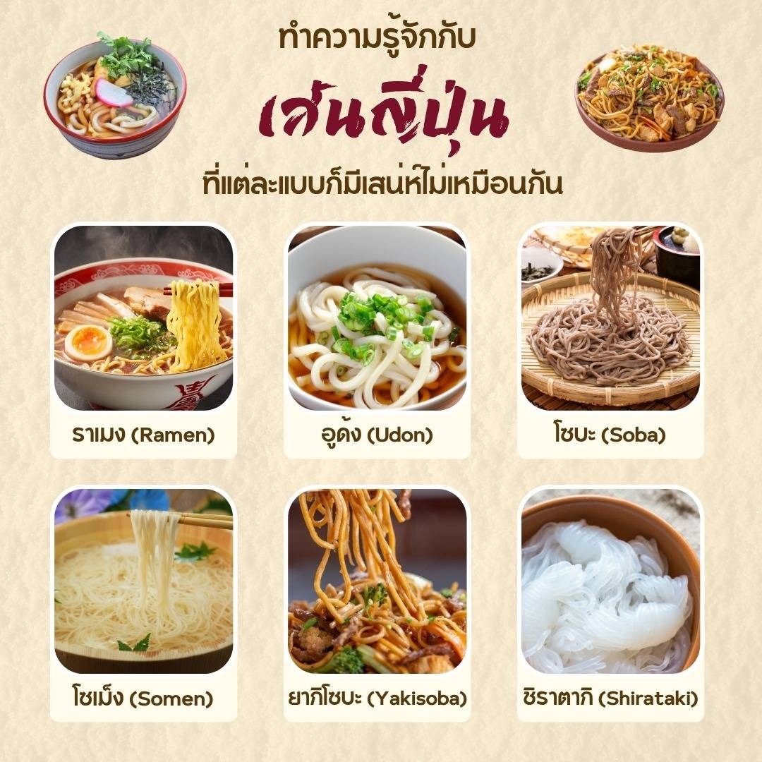 อ่านต่อมารู้จัก “สารพัดเส้นญี่ปุ่น” ทั้งราเมง อุด้ง โซบะ โซเม็ง ยากิโซบะ และชิราตากิ แต่ละเส้นมีเอกลักษณ์และรสสัมผัสเฉพาะตัว เหมาะกับเมนูญี่ปุ่นหลากหลายแบบ พร้อมแนะนำแหล่ง ศูนย์จำหน่ายวัตถุดิบทำอาหารญี่ปุ่น สำหรับผู้ที่อยากลองทำเมนูญี่ปุ่นแท้ ๆ ได้เองที่บ้านหรือในร้านอาหาร
